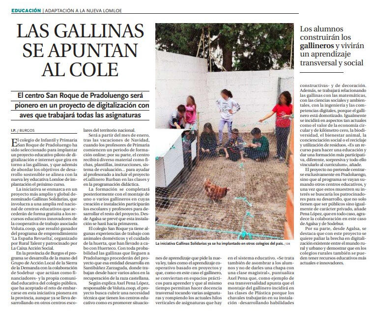 c) la entidad de nuestra base de datos a la que donáis el/los Gallinero/s solidario/s y que os va a generar contenidos recurrentes para vuestros canales...y nos contratáis.4.- Hacemos una publicación en redes sociales y una nota de prensa agradeciéndoos que forméis parte del lanzamiento de este servicio innovador de voluta.coop.